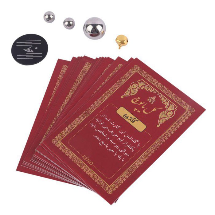 کد محصول: 14499- متعلقات: 16 عدد کارت بازی 2 عدد گوی کوچک فلزی 1 عدد گوی بزرگ فلزی 1 عدد گوی صدادار سکه شیر یا خط