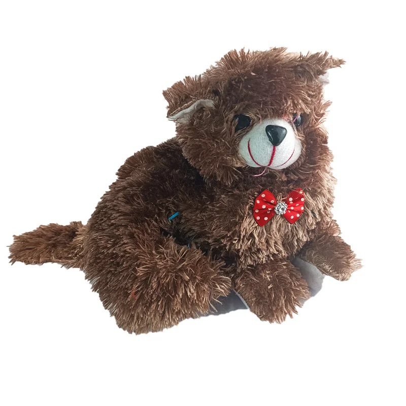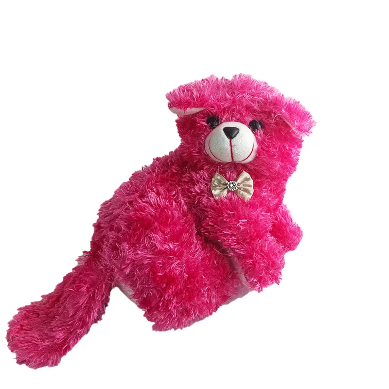 این عروسک در رنگ های قرمز،قهوه ای،آبی،صورتی میباشد و جنس آن پارچه پولیشی میباشد.