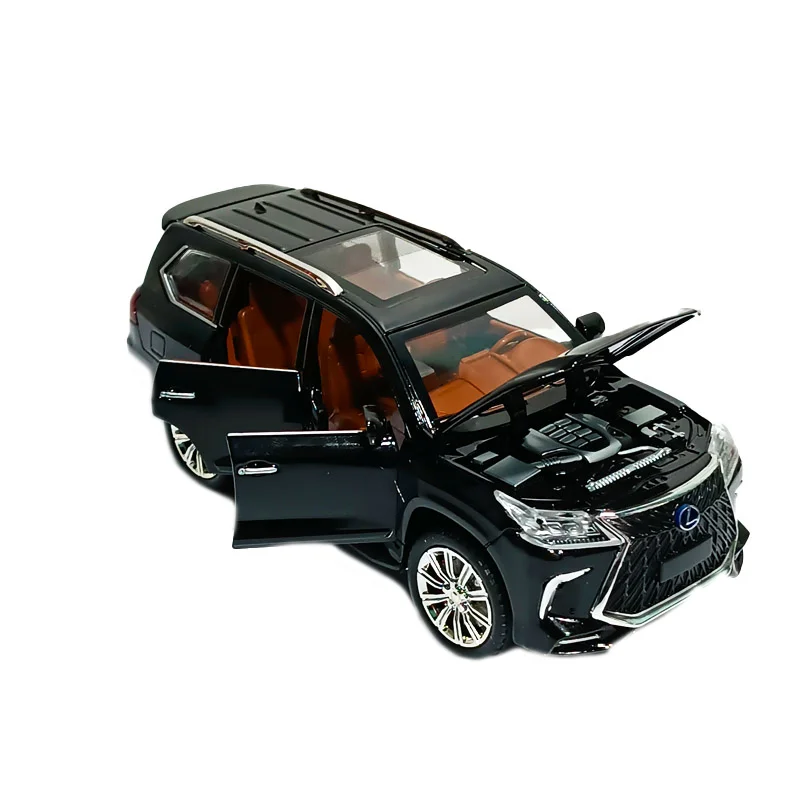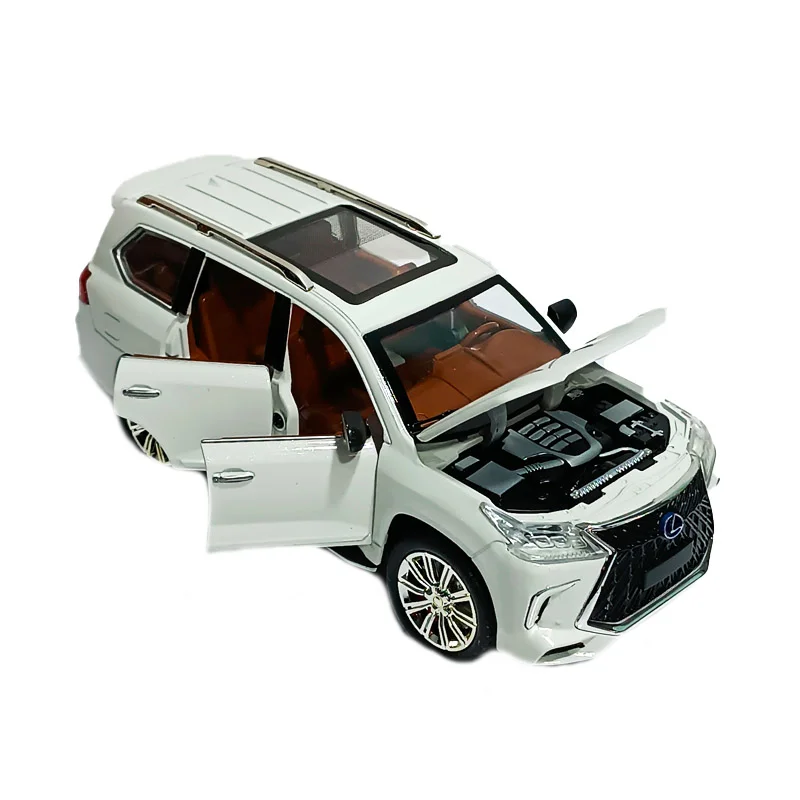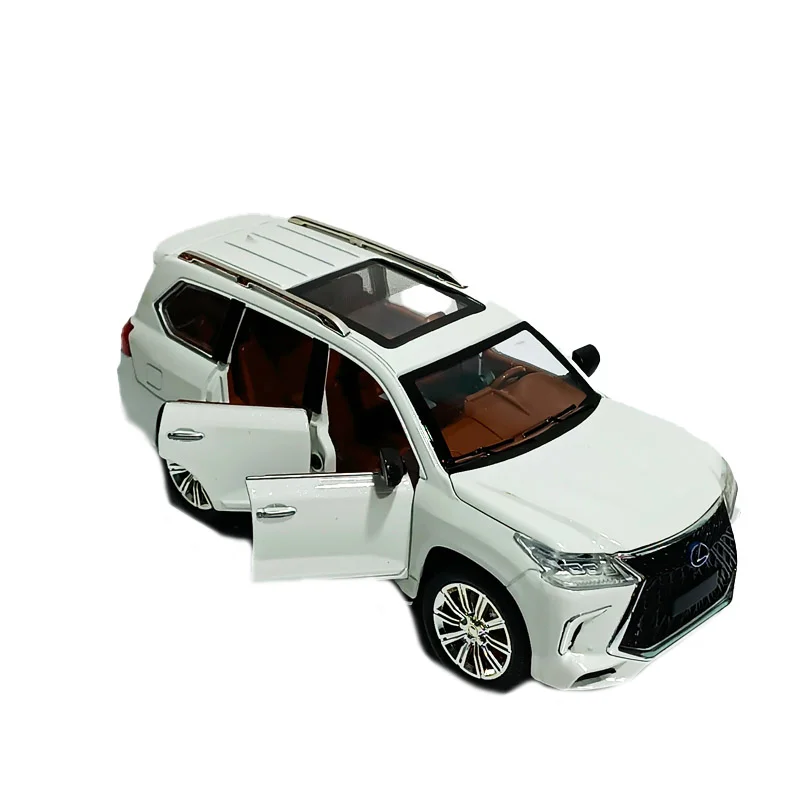 ماشین بازی لکسوس فلزی موزیکال دودزا در رنگ سفید و مشکی از طراحی با جزئیات بالا و دقیق ساخته شده جنس بدنه آن از فلز می باشد که از قابلیت باز شدن درب های جلو از خصوصیات این ماشین میتوان گفت.